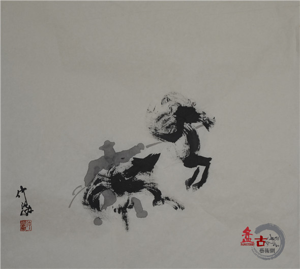【盤古藝術網】藝術家仲泊游多年來數次往返于草原,深入牧區、體驗生活,把在草原之所見記于心中;速寫于筆下,帶著濃濃的草原之情,用畫筆記錄著這片大草原上的牧民生活場景。在草原上,好馬是馴出來的,這句蒙古族諺語所言極是。草原上的馴馬活動,則是一場極富草原游牧文化的會演,集套馬、馴馬、打馬鬃、烙馬印等牧業生產活動于一身,成為春末夏初草原上的一件盛事。近日,小編獲得仲泊游最新創意的草原速記系列作品中其中有一部分就是”馴服未騎過的野馬“,下面就將它分享給廣大書畫愛好者。