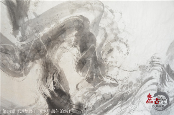 據了解,畫家仲泊游自八十年代就研讀老子《道德經》并把此書當做從事藝術創作的“大畫論”座右銘,經過數年探尋、多年構思,終于把《道德經》以畫作形式呈現出來。這些《道德經》畫境作品,畫幅宏大,水墨淋漓,宇宙山水,神秘之境,體現了遠古的哲人對天地宏宇的探尋之境;闡述了畫家仲泊游對經典的解讀,以及用畫筆詮釋了老子的經典意境。