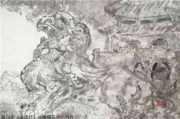畫家仲泊游自1980年代就研讀老子《道德經》并把此書當做從事藝術創作的“大畫論”座右銘,經過數年探尋、多年構思,終于把《道德經》以畫作形式呈現出來。這批《道德經》畫境系列作品共八十一幅近200米長,畫幅宏大,水墨淋漓,宇宙山水,神秘之境,體現了遠古的哲人對天地宏宇的探尋之境;闡述了畫家仲泊游對經典的解讀,以及用畫筆詮釋了老子的經典意境