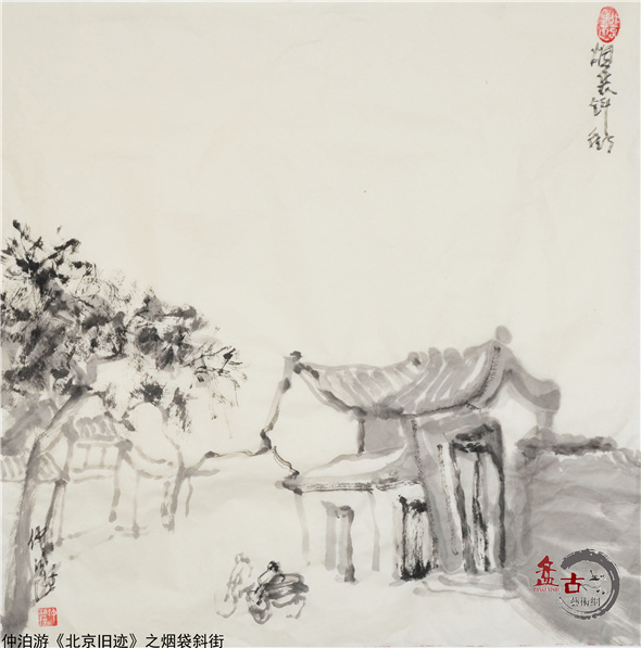 【盤古藝術網】仲泊游多年來收集、寫生、創作了《北京舊跡》百輯水墨畫稿,以此回望北京這座都城悠久歷史與人文的記憶。