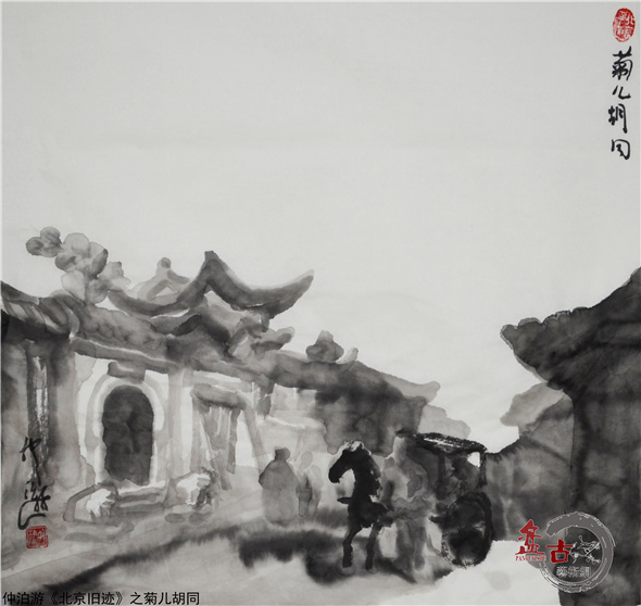 【盤古藝術網】仲泊游創作水墨尋影《北京舊跡》百輯組畫,描繪了晚清民初北京古都的景觀,人物及歷史文化縮影。古代都城建造了許多帝王宮殿、城樓、園林、廟壇、府邸、民居、胡同、長城。北京以其獨特的地理環境使多民族文化得以交流融合,形成了鮮明的京城印跡。