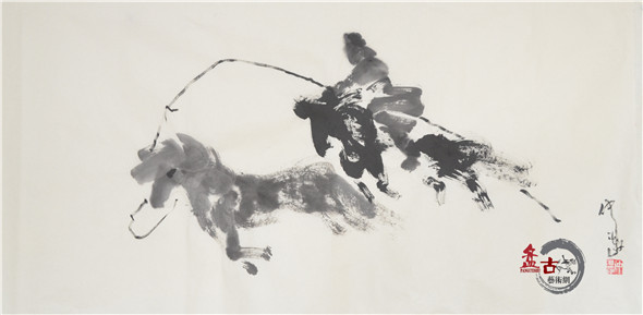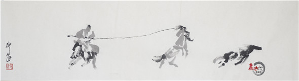 【盤古藝術網】藝術家仲泊游多年來數次往返于草原,深入牧區、體驗生活,把在草原之所見記于心中;速寫于筆下,帶著濃濃的草原之情,用畫筆記錄著這片大草原上的牧民生活場景。近日,小編獲得仲泊游最新創意的草原速記系列作品,本篇為“套野馬”,分享給廣大書畫愛好者。