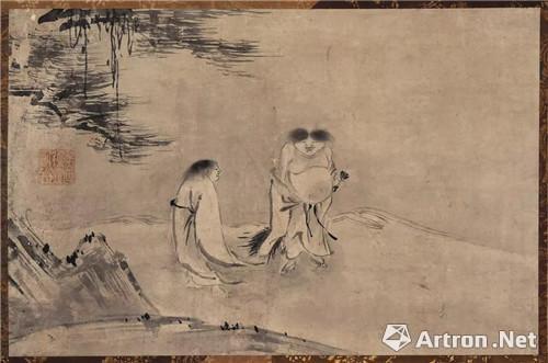 539 元 因陀羅《寒山拾得圖》(300-350萬JPY)出版:《美術(shù)畫報(bào)》第二十七編卷之六 1910年2月20日 九鬼男爵舊藏、狩野探幽外題、小杉榲邨題合